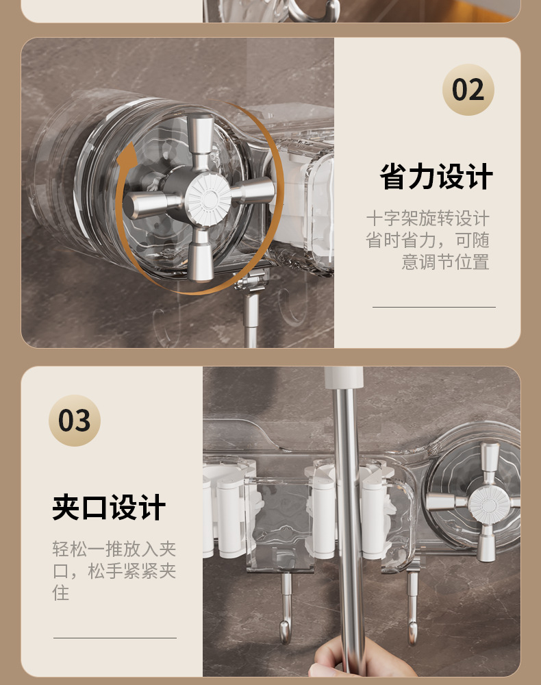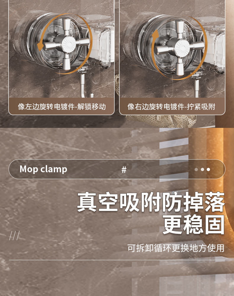 مشبك ممسحة مثبت على الحائط بدون حفر 3 قطع