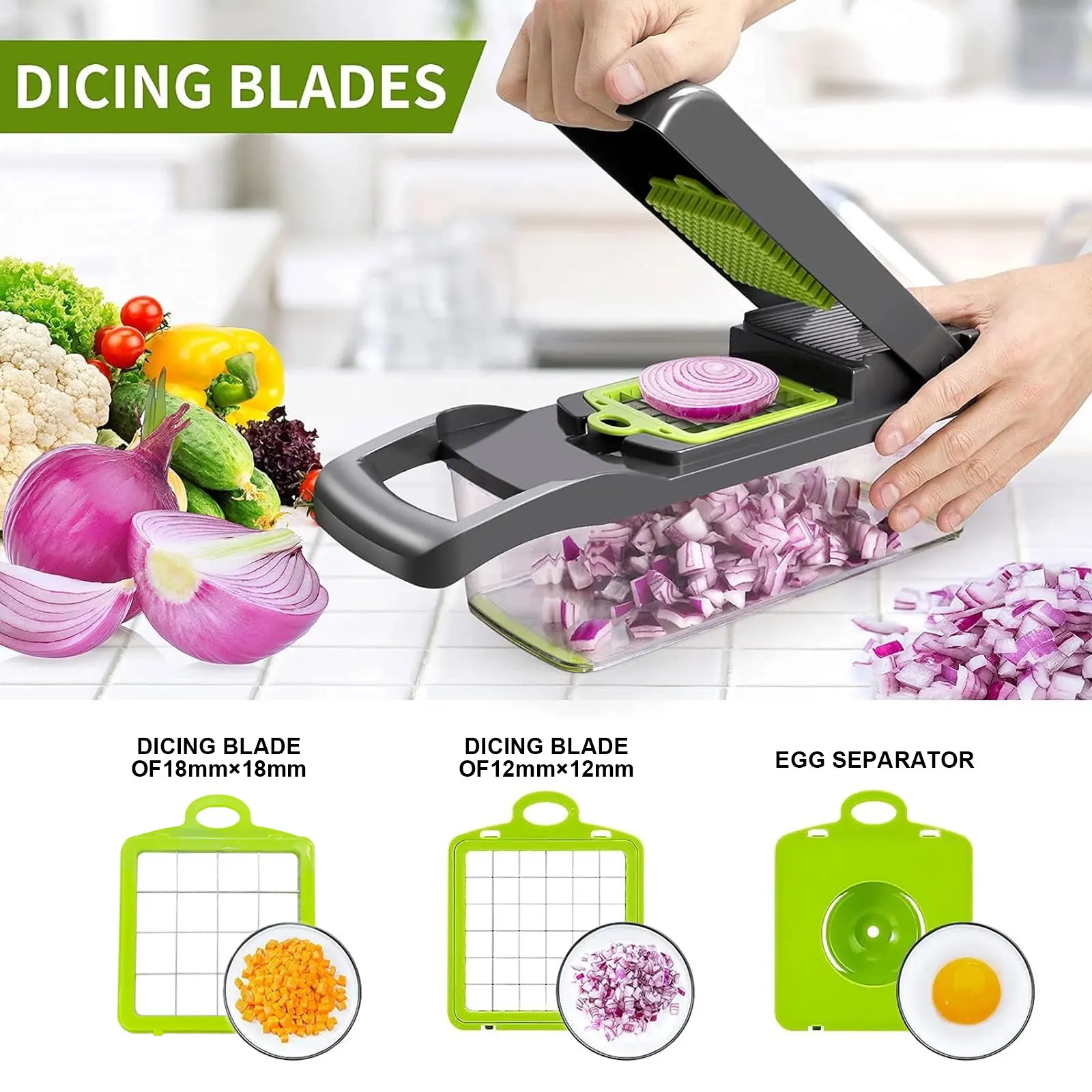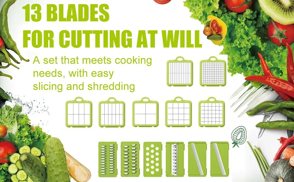 Hachoir à légumes professionnel 22 en 1 avec récipient